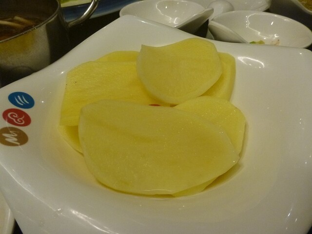 ポテトのスライス、氷豆腐、白菜、ほうれん草、最後の〆で麺を頂きました。