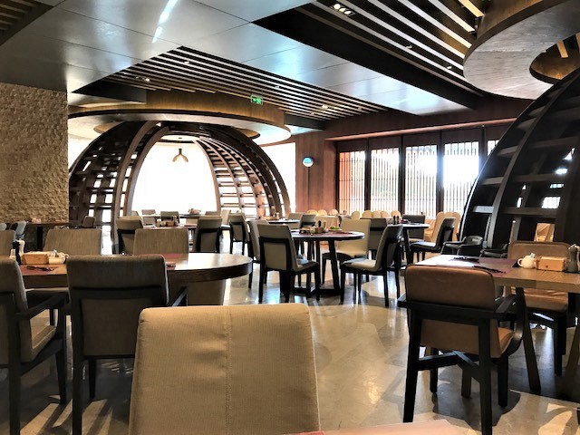 そのホテルの朝食は地下一階にあるこのレストラン。大型リゾートホテルによく有る様に相当に大きなスペースである。