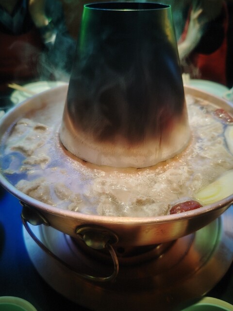 さて料理の方は、伝統的な涮羊肉で、辛くない火鍋と言うことができるでしょう。元々火鍋は涮羊肉が起源なのかなと思います。昔、30年前に東北で食べたときは出汁は単なるお湯だったと思います。