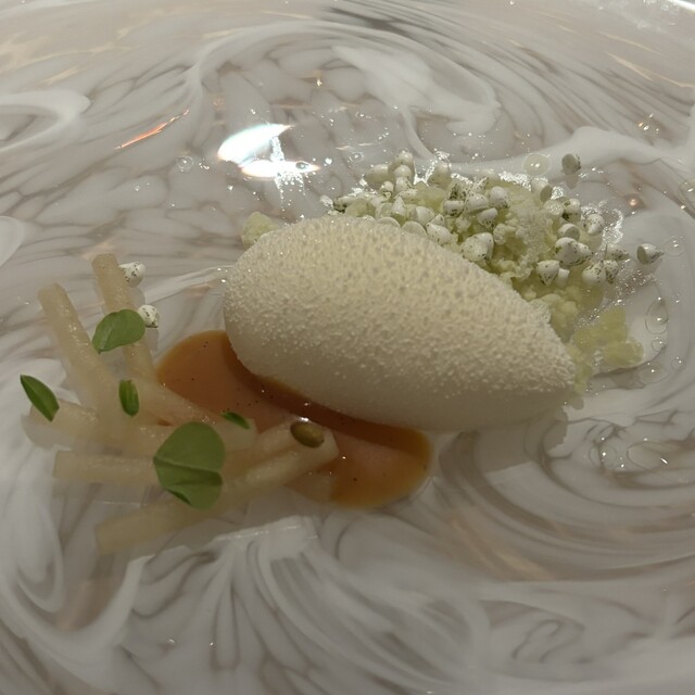 ☆Celeriac with söl, raw apple, hazelnut oil & caviar