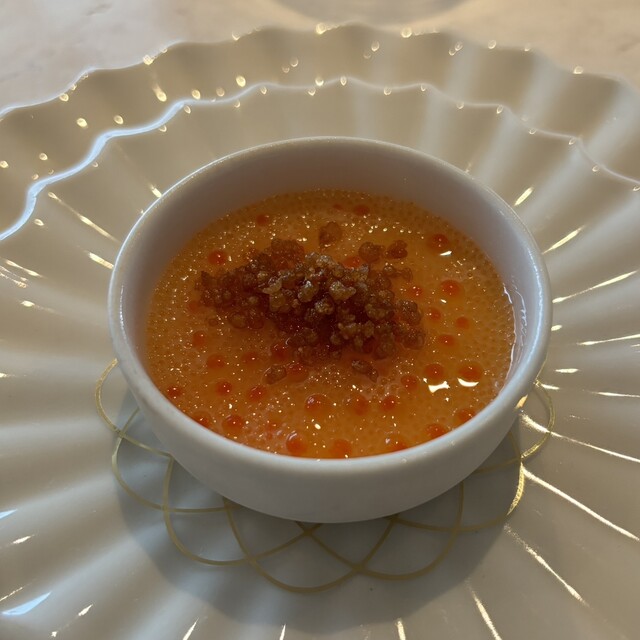シャンパンを頂いた後、テーブル席に案内され、コーススタート♪