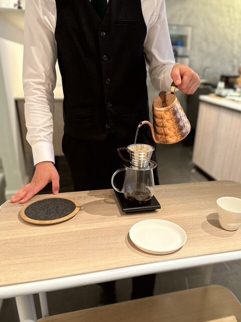 再びテーブルに戻るとデザートは3品。どれも小さなものですが、3皿出てくるのは嬉しい限り。今回の旅でシーバックソーンは3回目の登場。北欧らしい食材です。デザートの細工も繊細でアート的な仕上がり。最後のコーヒーは追加。目の前でドリップしていただき、このコーヒーもかなり美味しいですね。