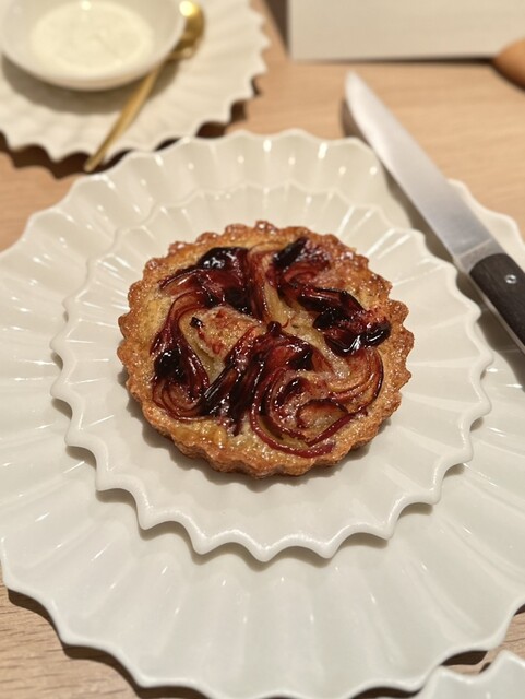 ⑪ホタテ 葉をかたどったブラックカラント 燻製バター