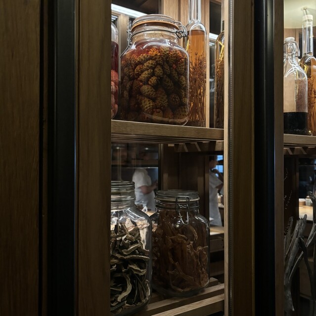 お店の説明を聞きながら、松ぼっくり等を酢漬けに
