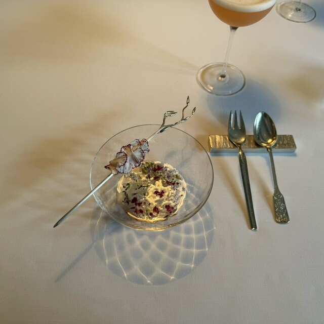 このメニューは、小さな一口サイズの前菜から始まり、魚介類を中心としたメイン料理、そし...