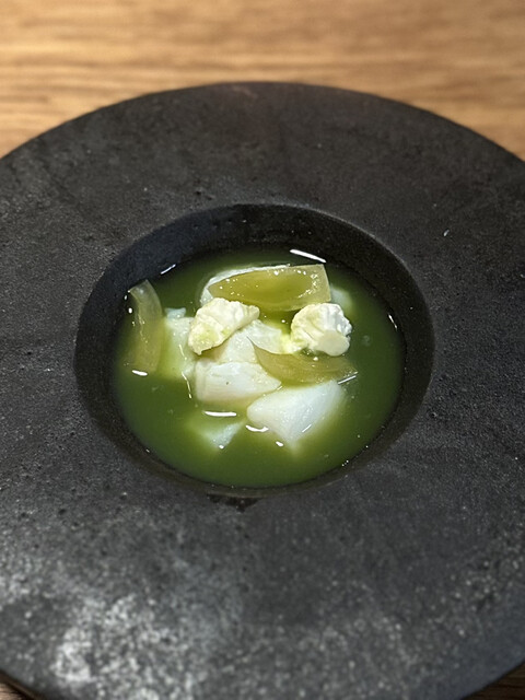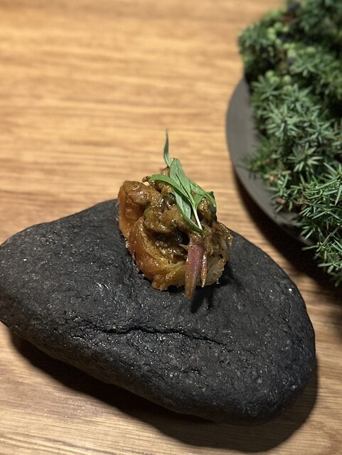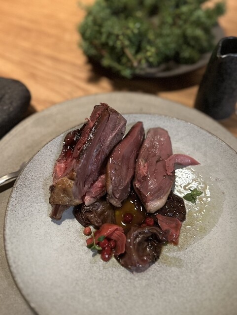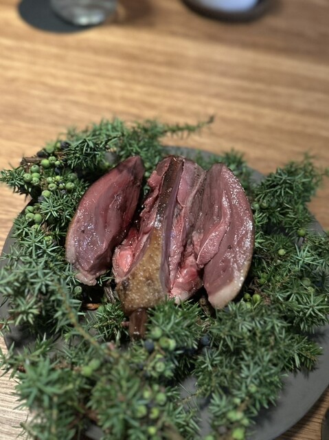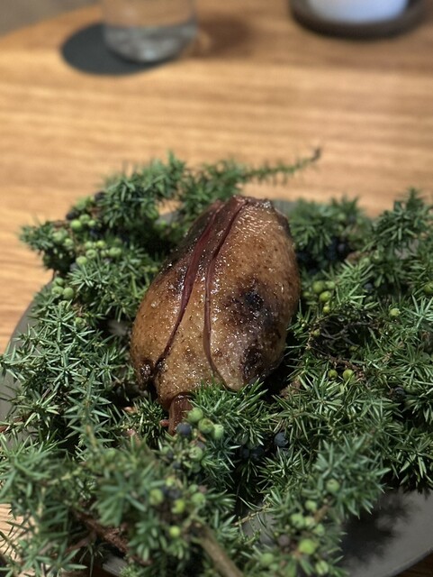 一つ一つ趣向を凝らした独創的な料理が続きました。ヨーロッパに行って初めて知ったのですが、キャベツにはかなり種類が沢山あります。今回食べたのは「サボイキャベツ」という、葉脈が網目の様に浮き出たものです。半分発酵しているので酸味もありながらクリーミーなソースがとても相性良いと感じました。日本ではキャベツは一種類ですが、ヨーロッパには沢山の品種が流通しています。余談ですが「ザワークラウト」は日本のキャベツで同じものは作れません。なぜならフィルダークラウトを代表とするとんがりキャベツと呼ばれる、硬いキャベツを使っているからです。逆に言えばとんがりキャベツは硬すぎて千切りにして生で食べる事は出来ないのでザワークラウトにするらしいです。イカを平打ち麺の様にカットし、パスタに見立てたのはナイスアイデアですね。「スモーク鱈とカリフラワーのセビーチェ」はペルー料理ですね。小鳩のローストは若干火入れが強いですね。天然の小鳩なので火入れを強くしないと寄生虫などの恐れがあるからかもしれません。しかしどの料理もとにかく味濃いめで塩っ辛い。味濃いめは好きな方ですが、塩分強めはなかなか厳しい。特にスモークピザからのドライポークリブBBQは塩が強すぎてかなり厳しかったです。デザート二品はどちらもとても美味しく、ボリュームもあったので満足です。シーバックソーンはヨーロッパ北部の海岸エリアで取れる酸味の強いオレンジ色のベリー。日本ではまだ流通していないレア食材と言って良いでしょう。最後のフレッシュハーブティーもちょっと得した気分。塩味の強さは地域性でしょうね。それはもう料理のクオリティに含めて評価すべきではないのかとも思います。しかしどうしてもそこだけが突出して気になってしまいました。それ以外は全て満足できる内容でした。