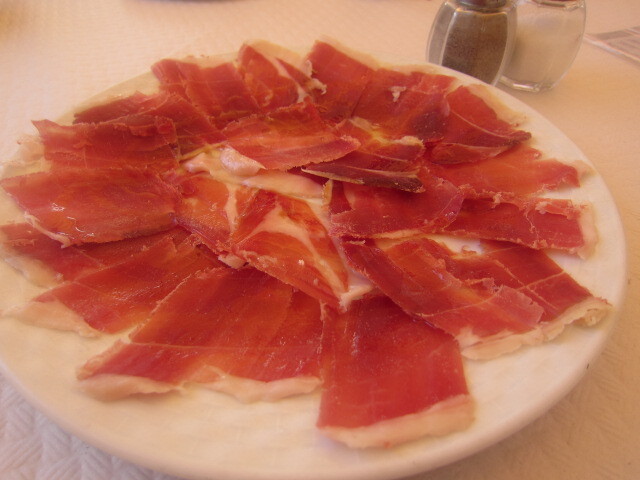 食べたのはガスパチョ、ハモンイベリコは追加で注文して赤ワイン