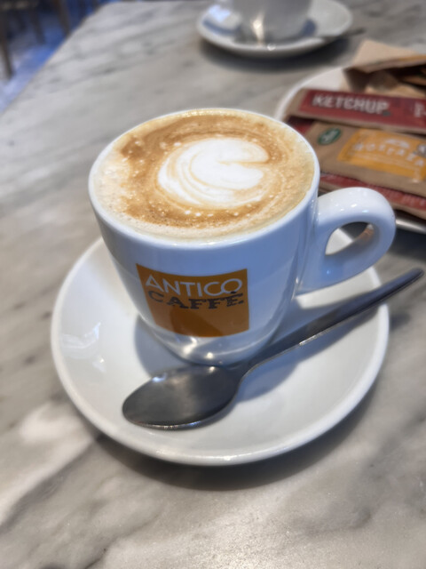 バルセロナで立ち寄ったカフェ「Antico」は、落ち着いた雰囲気のこぢんまりとしたお店で、観光の合間に少し休憩をしようと思い入店しました。今回は店名がついたハンバーガー「Antico」とカフェラテを注...