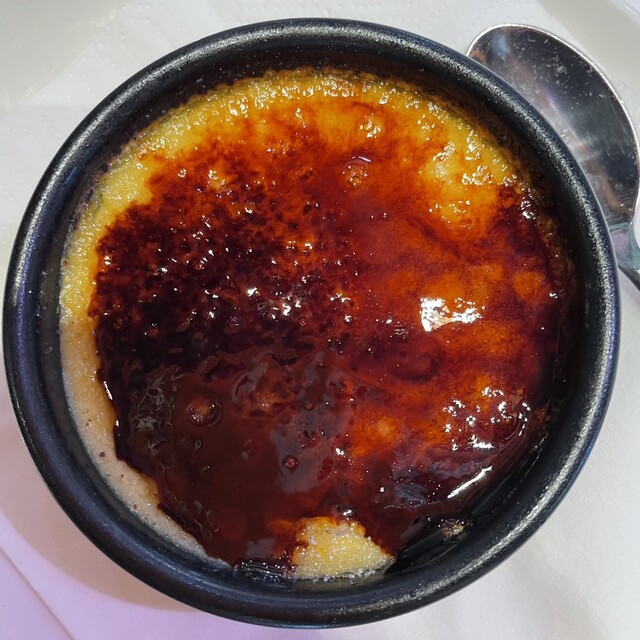 フランスのクレームブリュレ(プリン)と違ってシナモン風味のクリームに厚めのカラメル化。