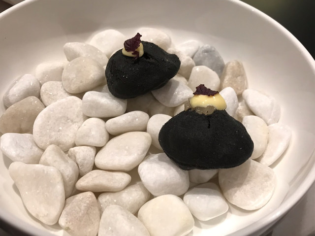 どうにかお店にたどり着き、予約名を告げ、シェフズテーブルのカウンター席に案内していただきました。