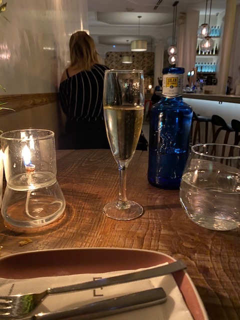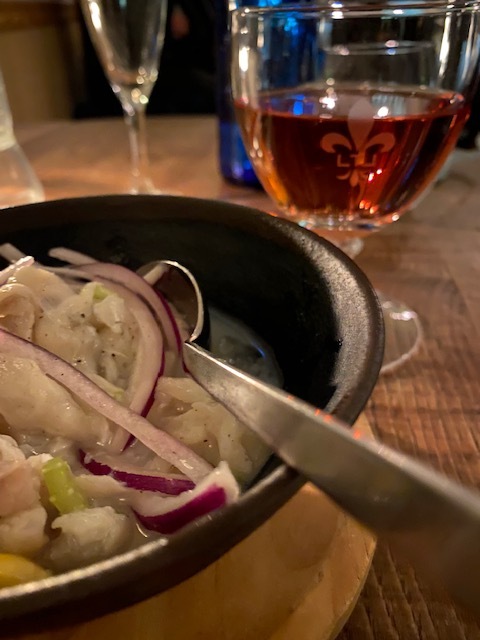 cava、ミネラルウォーターとsea bassのcevicheをオーダー。
