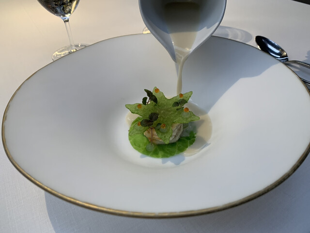 鉄路バルセロナ到着、2017年以来4回目。早速ホテルに荷物置いて3つ星に昇格した当店到着。HPは1人予約不可記載でしたが、直接頼み込むとOK。まあ、実際平日火曜ランチは半分くらいの入で、スタッフの方が多いです。店内インテリアは倉庫をここまでスタイリッシュに改装できるのかと驚かされます。お料理は出汁っぽい皿もあり好印象、以前はあり得なかった海藻・tobikkoも食材ですw この時期の涙目グリーンピースはめちゃ旨、メインの鴨も脂乗ってレア旨いです(๑˃̵ᴗ˂̵)3つ星昇格がよほどうれしいのか全員お揃いの3つ星靴、シェフも2回お愛想振り撒き(笑)
