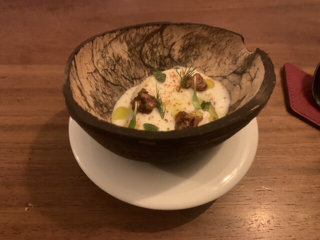 ミロ公園近くのビブグルマン、平日19時半で満席です。アラカルトなし、大小テイスティング2択、なので小チョイス。まあお味は特段旨いわけではなし。ガーリックライスはめちゃ味濃い、エビは味ついてないので、全面にあったらいいのに。