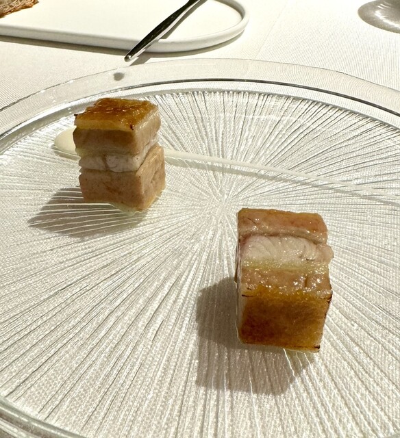 知り合いのシェフから、「絶対に食べて来て」と念を押されたスペシャリテ「鰻、フォワグラと青リンゴのミルフィーユ」は、味覚のバランスのまとまりが黄金比!