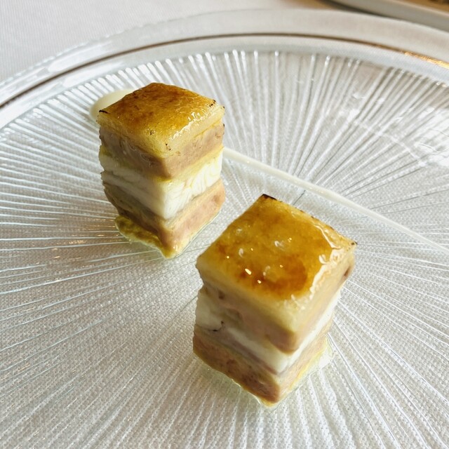 メニューから料理を選ぶこともできますが 少量の料理をいろいろと楽しめるコースにしました。料理は10品、それからデザートの3品へと続きます。