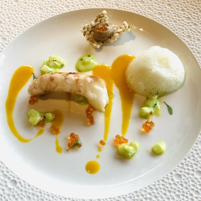 バスクの郷土料理の要素を取り入れた 前衛芸術のような料理でした。カラフルで見ていて楽しいです。