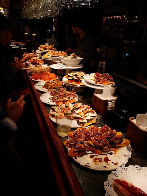 名物の《マッシュルームのピンチョス》後は、珍しくテーブル席で食する。本格的ステーキを頂くのはやはり落ち着いた環境が必要、