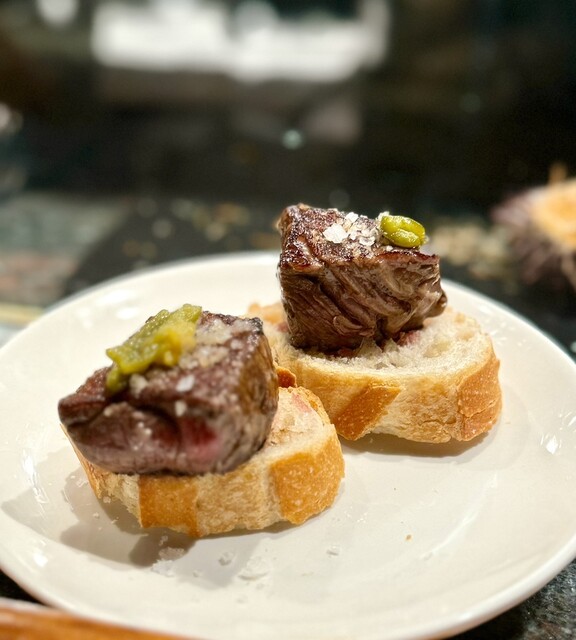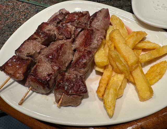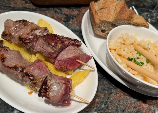 名物の《マッシュルームのピンチョス》後は、珍しくテーブル席で食する。本格的ステーキを頂くのはやはり落ち着いた環境が...
