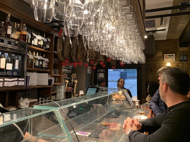 サンセバスティアンの有名店。バールの方は立ち飲みです。雨だったせいか入った時には余裕でしたが その後 満員になりました。