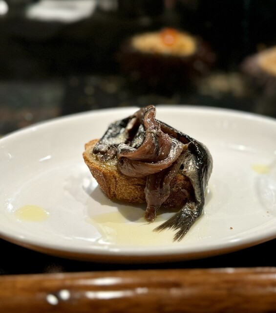 ピンチョスは魚、エビ、カニ、ウニなどどれも美味しくて連れとシェアしながら...