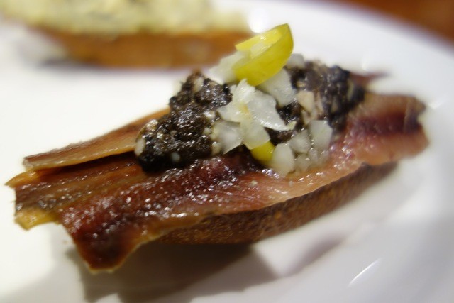 アンチョビにこの黒いのはなんだっけかな?塩気と磯の香りが強烈で一気に酒が進む。