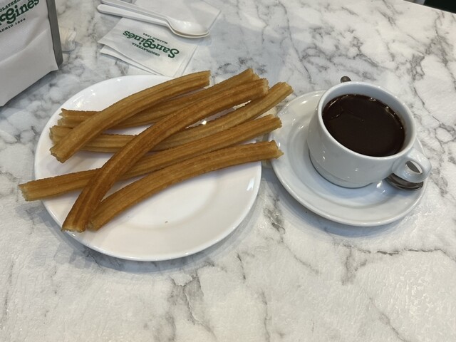 マドリードの老舗カフェ(1894年創業)でチュロスとホットチョコレートが有名なお店です。