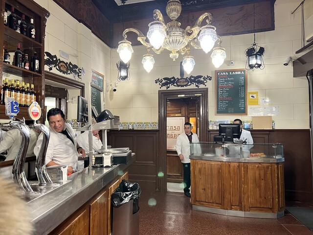 今夜最後のバルホップはバカラオのフリットで有名なCasa Labraでバカラオのフリットとクロケタスを注文。クロケタスはかなり塩味が強いです。