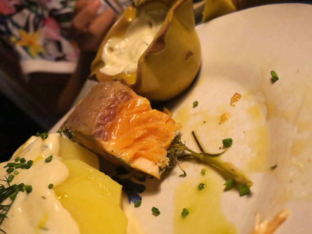 レアに燻されたサーモンの風味の良いこと!