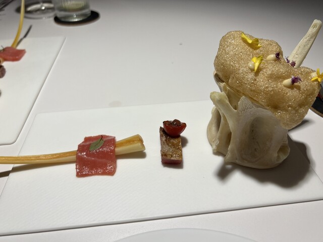 今回は世界中の料理を彼なりに解釈した料理が多く、鮨、ラクサ、タイカレーなどからインスパイアされた料理がありました。
