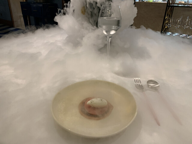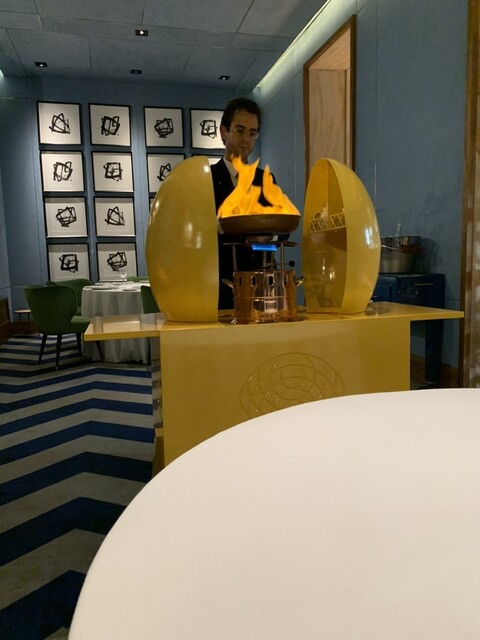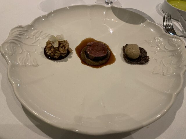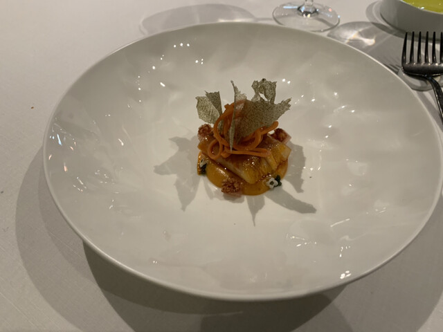 プラド大通から1本入った所のルレエシャトー2つ星レストラン。バー・ワインセラー・聖具室・キッチン・パン焼き場移動しながら、摘んで飲んでダイニングルーム。カクテル・カルヴァドスはかなり強いので、ダイニングに着いた頃にはバクバク( ̄▽ ̄;) 幸いワインペアリングはフツー360€ プレミアム660€とお料理よりお高いのでパス。なるほどお料理はワインに合わせたような濃い味付け、実際旨いのは最後の皮付き豚くらいですな。炭酸水1Lほぼ飲みきりました、お腹一杯、お茶菓子は見るだけ(๑˃̵ᴗ˂̵)