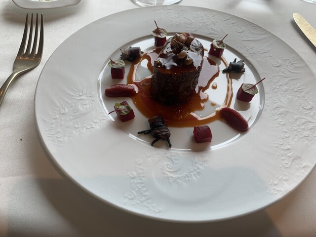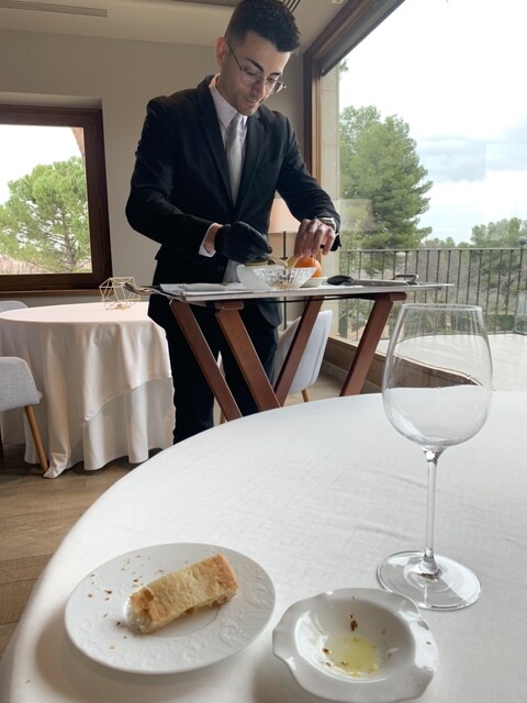 トレドの2つ星レストラン。スペインには珍しく日曜営業、14時過ぎには満席。案内されたテーブルは世界遺産城塞エリア一望できてます。お料理テイスティングメニューのみですが、物量別大中小で3択、真ん中チョイス。BGMは60’S POPS。お料理まずまずの旨さ、ビッグサプライズは出自は違うもののうなぎ稚魚とグリーンピース、チーズソースみたいな味付け、ダントツに旨し。日本じゃうなぎ稚魚はとんでもないお値段なんで、まずはたべられませんな( ̄▽ ̄;)