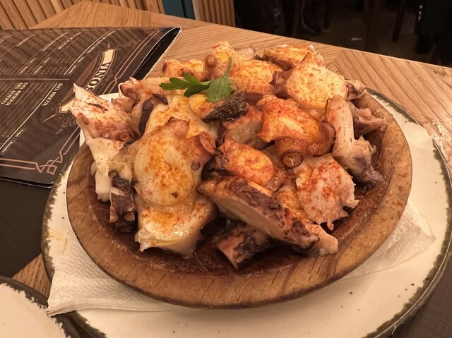 ガリシア風タコのグリル、トルティージャ、コロッケ、ハモンイベリコを注文。