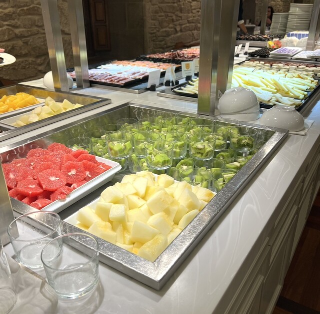 ◉大聖堂に隣接するパラドールは荘厳な外観で、ホテル内の回廊や中庭など500年以上前の雰囲気がそのまま残されている。