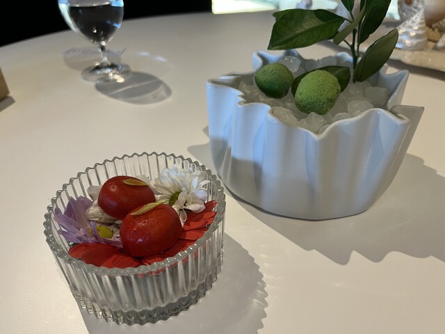 料理は演劇よろしく5幕に分かれ、1幕のアミューズ系は外でいただきます。