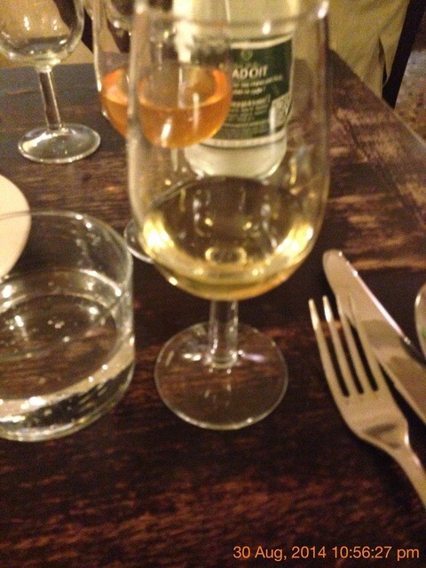 (アンコウ、スベリヒユ、ピメントン、白豆。魚は普通ですが、きちんと調理してある分、鯖よりはましです。ワインはこの白が一番しっくりくる美味しいものでした)