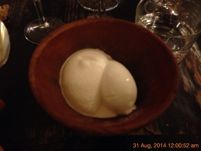 (冷酒と合わせてくる意外性。バターミルクのアイスとエルダーフラワーのフォームは良かったですが、少ししつこい。冷酒とエルダーフラワーは合います)