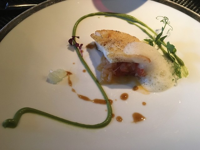 鯛 コリアンダーとアボガドのソース エシャロットと玉ねぎ添え 普通に美味しい。