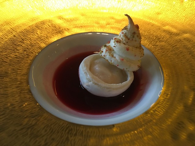 フォアグラチェリーのせ ハイビスカスソース どん!と出てくるフォアグラ。ちょっと量が多かったー