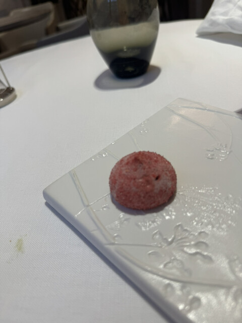 まず出てきたのは紫蘇のお口直し?、とてもさっぱりで美味しかったです。