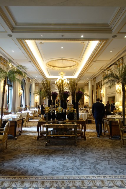 ワインリストは百科事典のようであり(ワインセラーには5万本以上のボトル!)、客の財布を萎縮させるに充分な厚さなのですが、覚悟していたよりも値付けは悪くありません。絶対額も50ユーロ〜とこの手のレストランとしては破格であり、ホテルの懐の深さを垣間見た瞬間でした。