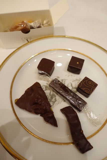 チョコ好きの私は狙ってチョコばかりをチョイス。いずれもショコラトリーで1粒400円で売り出しても問題のないレベルです。写真左上の箱はお土産用。チョコばっかりを食べている私を見かねてか、塩キャラメル(ブルターニュの名物)を箱に詰めて持たせてくれました。