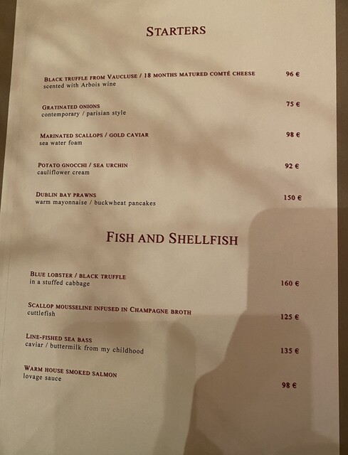 Le Cinqは、パリのFour Seasons George Vホテルのメイン ダイニングだ。白い木を基調とした内装で、大きな中庭に面しており、華やかな雰囲気がある。テイスティング メニューとアラカルトがあるが、我々は夕食に訪れて、アラカルトから定番を選択した。