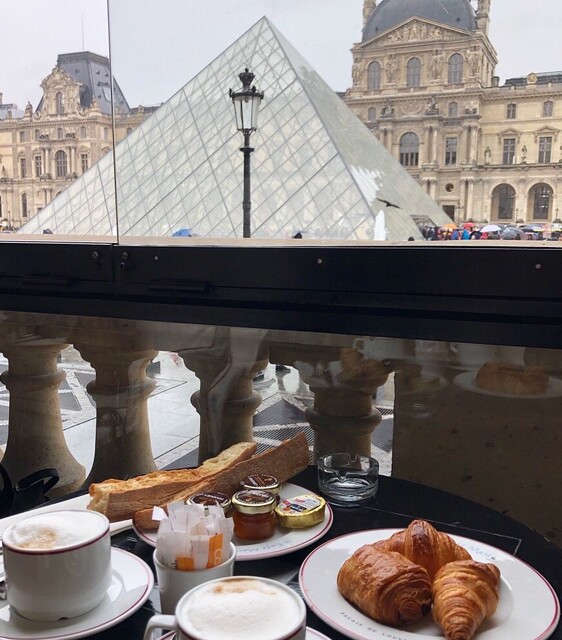 開館前のルーブル美術館のピラミッドを観ながらの特等席で食べる《プティ•デジョネ》
