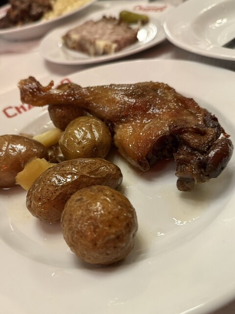 パリのレストランを調べ、高評価だった為訪れた。お店に着くと長蛇の列。しかし、お店の回転はかなり早く40分程度で座れた。席は相席で、お店はいい意味でガチャガチャした雰囲気。料理は美味しく、かなり安い。鴨...