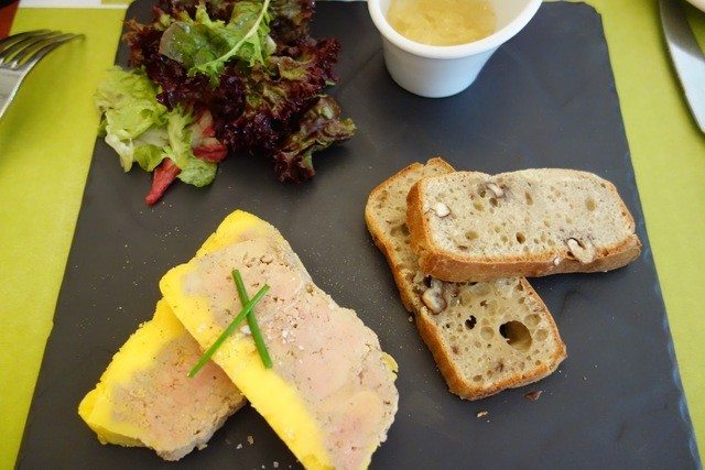 前菜にフォアグラのパテ。美味しいけれども、わざわざパリまで来て食べるものではなかったかもしれません。