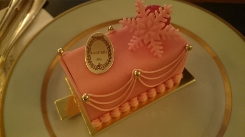1つはこのピンク色のケーキ。(名前不明)ラデュレのケーキは基本可愛い系ですが、これは特にかわいい!食べるのが勿体ないです。