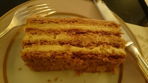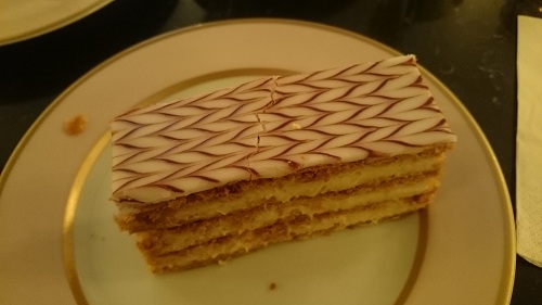 もう1つはミルフィーユです。男性の店員さんが豪快にお皿に乗せてくれました。微妙に割れています。。。