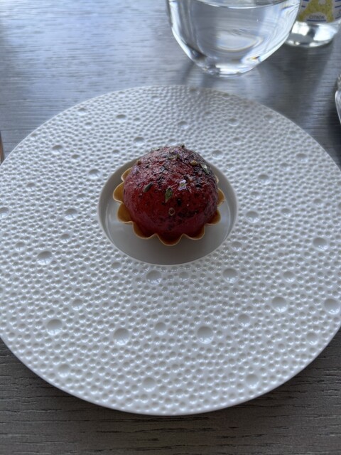 フランス訪問にて予約して参戦しました。ドレスコードありのため、スーツを持参し、準備は万端です。メーデーのために祝日扱いでランチはなく、フルコースメニューをいただきました。なお、ミシュラン2024で、こ...