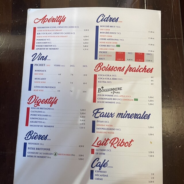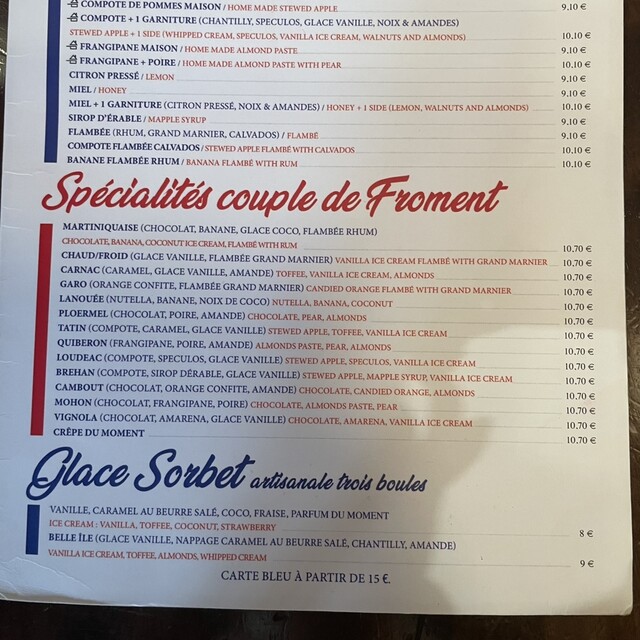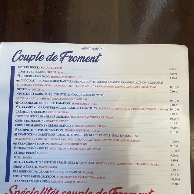 ガレットとクレープ両方食べれて英語のメニュー表記あり。