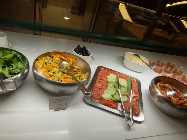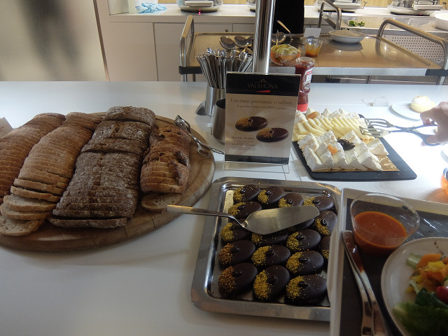 食べ物はビジネスと全く同じだけどワインだけが上等のが別に置いてある。